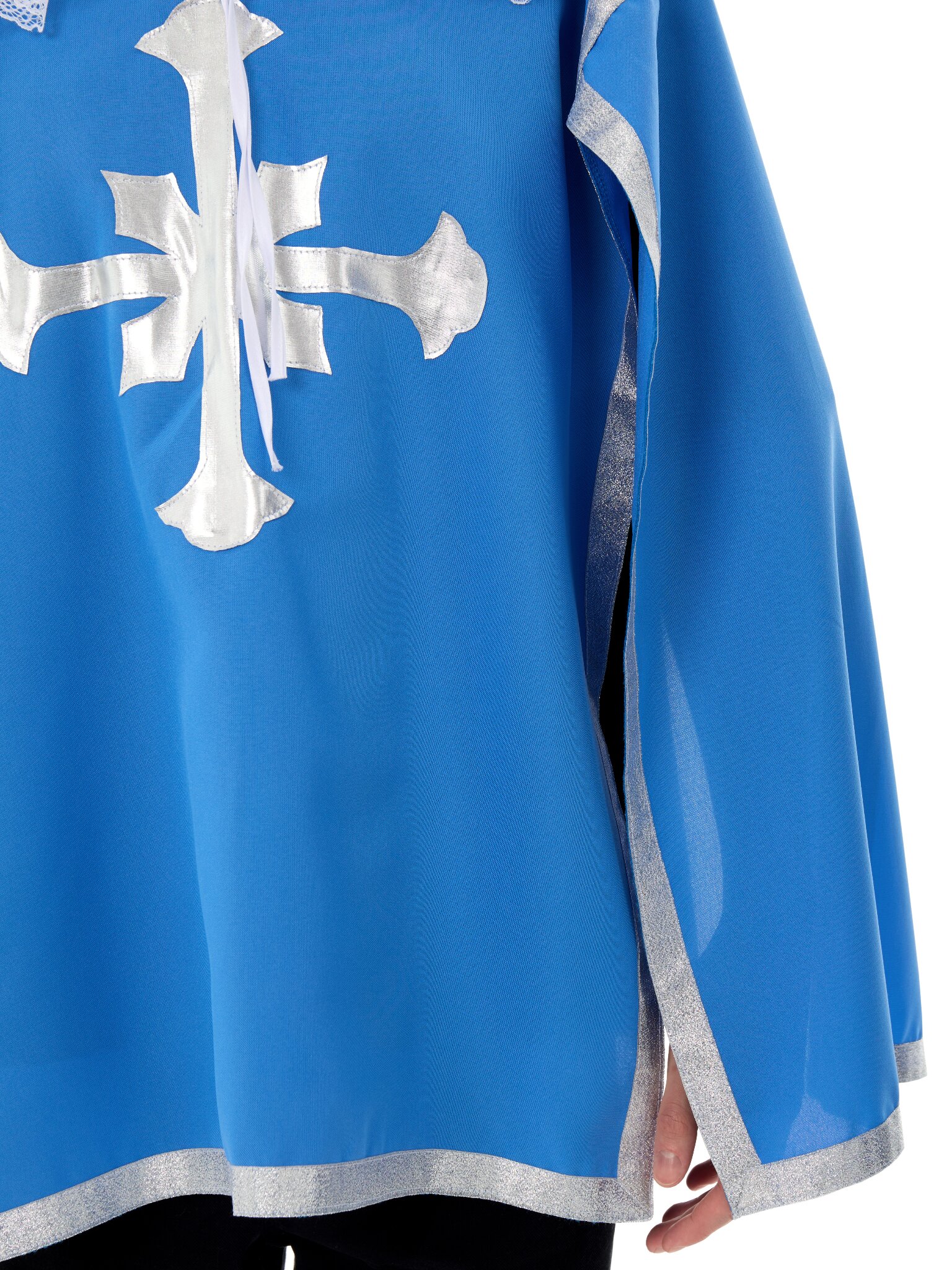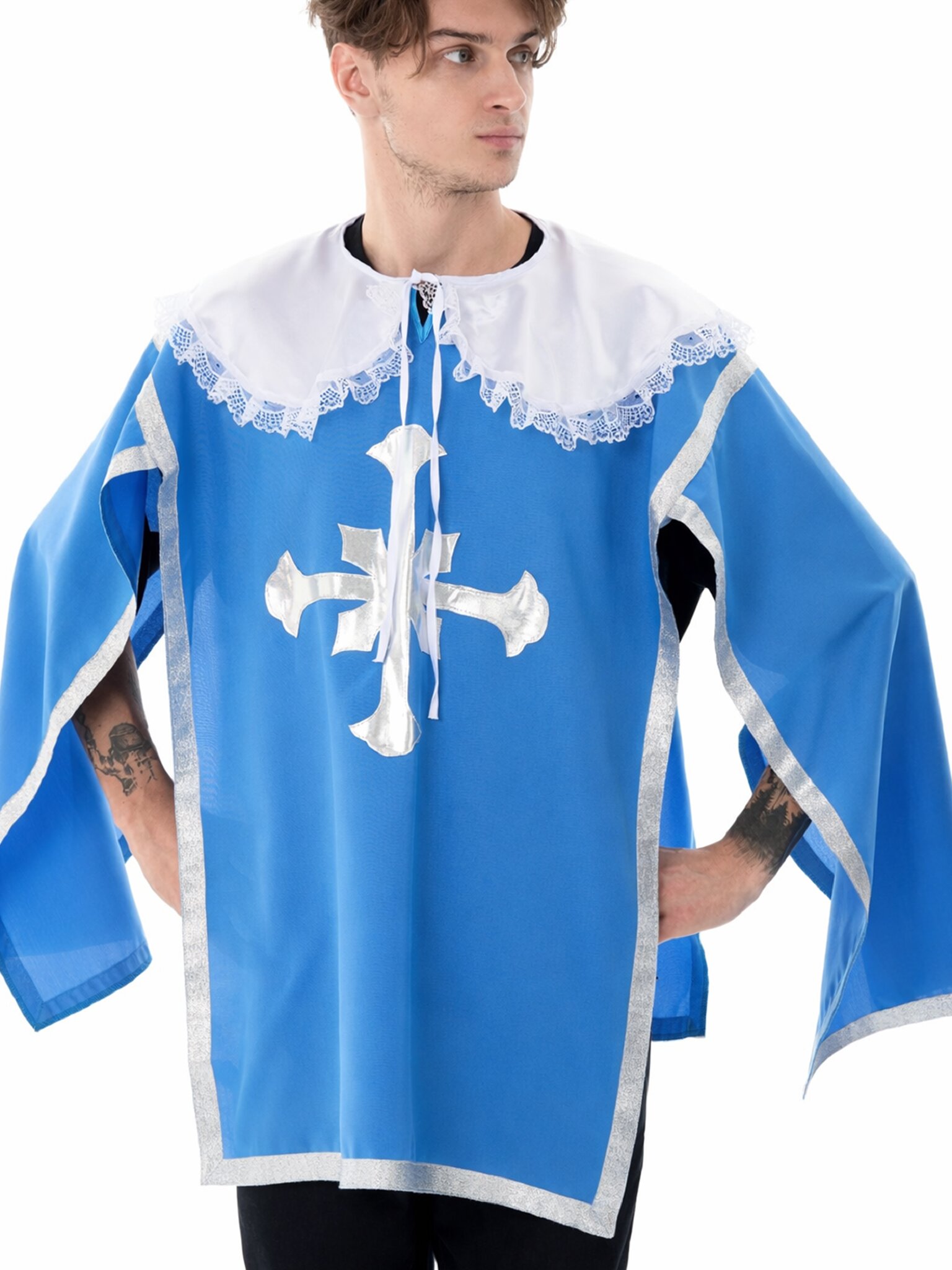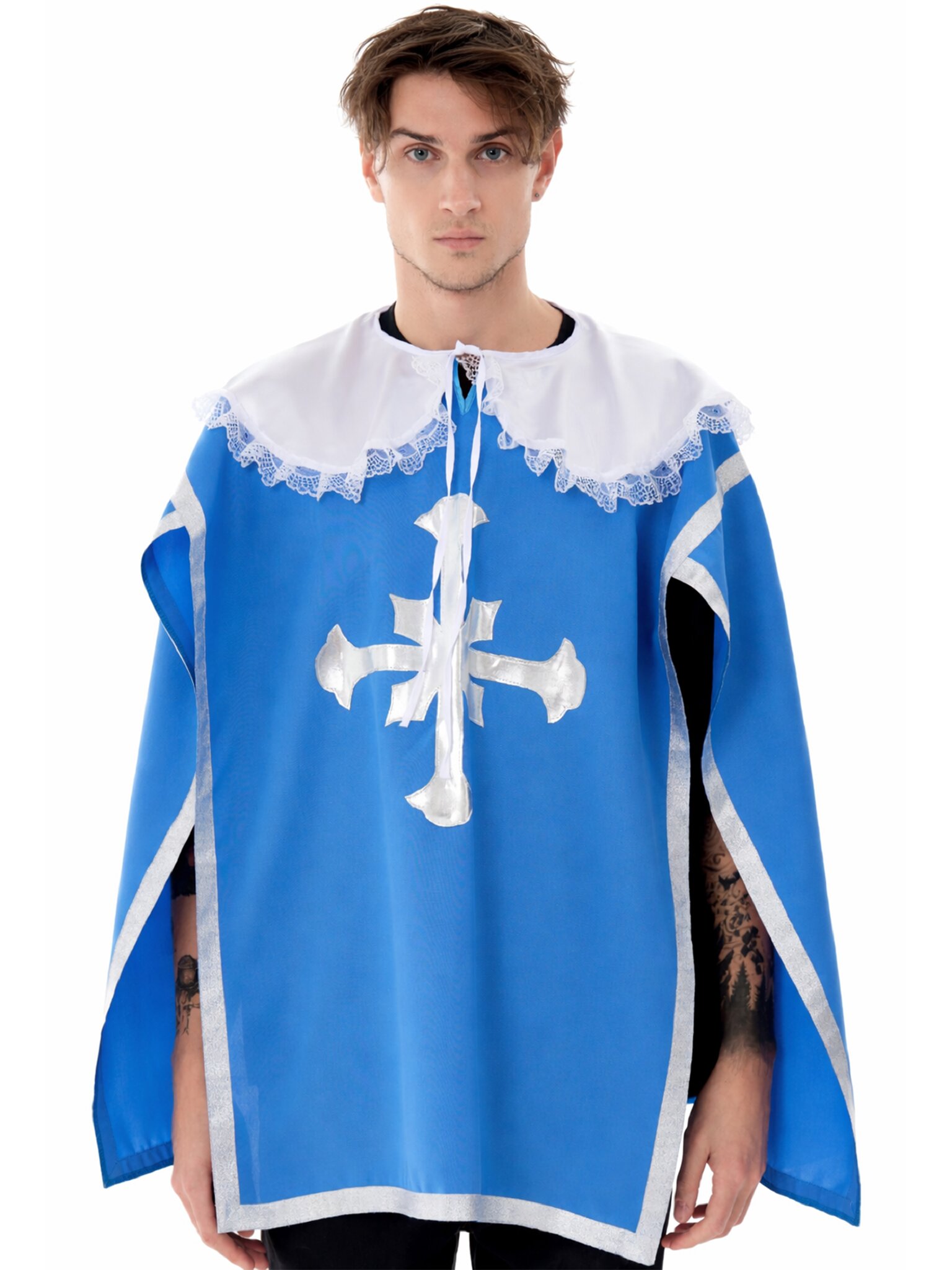 Карнавальная накидка мушкетера – изысканный костюм для взрослых, выполненный из качественного габардина в благородном голубом цвете. Эта накидка украшена белым кружевным воротником и гербом, воссоздавая атмосферу средневековья и легендарной эпохи мушкетеров. Подходит для мужчин, которые хотят впечатлить своим образом д'Артаньяна на тематических вечеринках или исторических мероприятиях. Продукция российского производства обеспечивает надежность и комфорт в носке. Мушкетерская шляпа и шпага в состав костюма не входят!